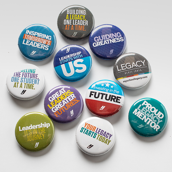 One-inch buttons delivering some big rewards by helping build camaraderie at your Legacy events as they help recognize the staff, educators and principals who participate. Available in packs of 44 (11 different designs with 4 buttons each)