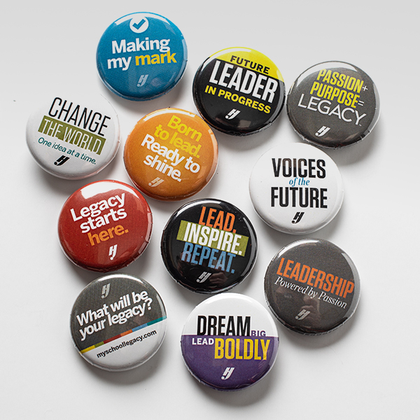 Each button has its own inspirational message and are fun for students to wear during the week. Available in packs of 44 (11 different designs with 4 buttons each.)